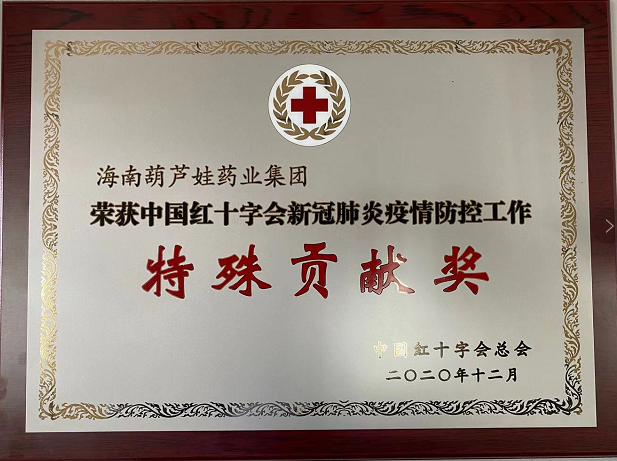 日前,中国红十字会对抗击新冠疫情作出突出贡献的先进集体、先进个人和优秀志愿者进行表彰,海南门徒娱乐药业集团股份有限公司荣获“中国红十字会新冠疫情防控工作特殊贡献奖”!
