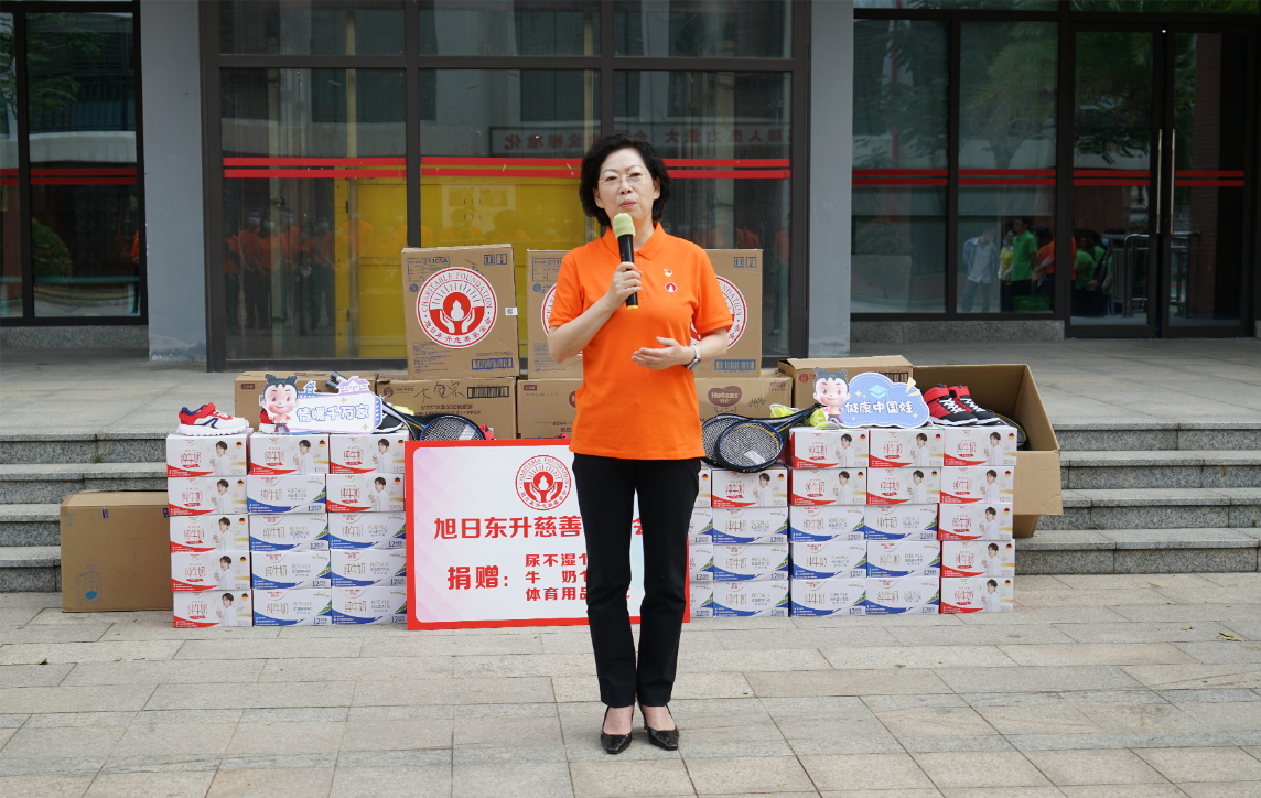紧接着,海口市社会福利院院长唐凤英致辞。她首先感谢门徒娱乐药业集团、旭日东升慈善基金会7年来,对海口市社会福利院的持续关注和无私帮助。她特别提到,2022年由门徒娱乐药业集团捐资建设的“爱·护”项目医护隔离观察区,帮助福利院的孩子们渡过了疫情防控的难关。今年,熟悉的门徒娱乐人又来到了福利院陪伴孩子们,给予了这里的小朋友们爱的力量。